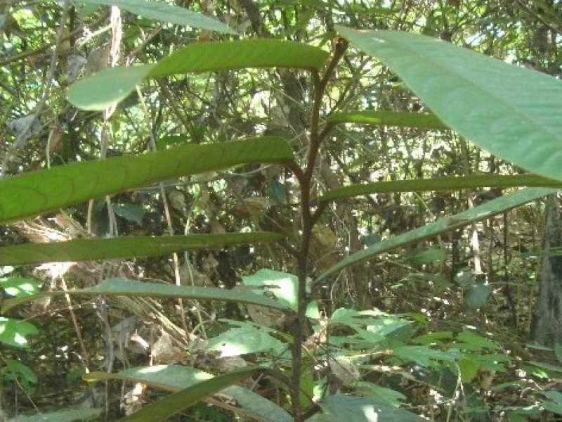 Đặc điểm hình thái: Lá cây gỗ nhỏ, cao 2-3m, lá thuôn hình trứng ngược, chóp thành mũi nhọn, gốc cây hình nêm. Phiến lá dài từ 20-35cm, rộng từ 7-9cm. Hoa mọc ở lách lá, hoa nhỏ màu trắng.